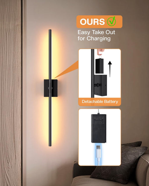 View full details31.5" Wall Sconces Lights with Rechargeable Battery 360° Rotation 2-Pack