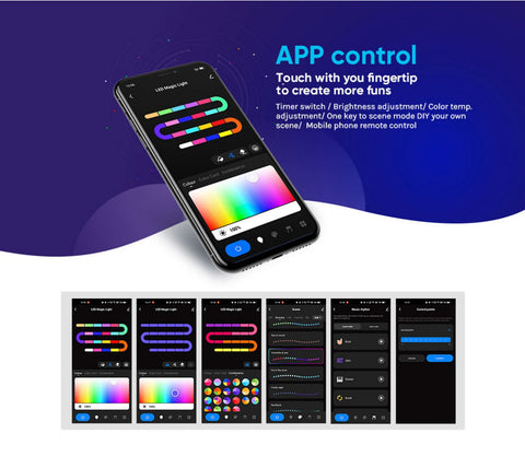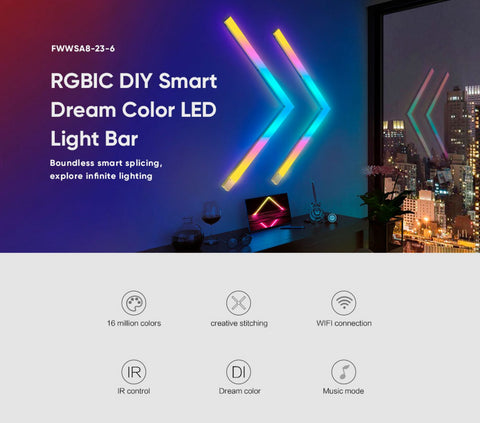 RGBIC DIY Smart Dream Color LED Light Bar is a cutting-edge light bar featuring a smart App, Alexa and Google Assistant compatibility, and the ability to synchronize your music for a fully immersive light show. Control it from the convenience of your phone or voice commands, and enjoy the next level of home lighting possibilities.
