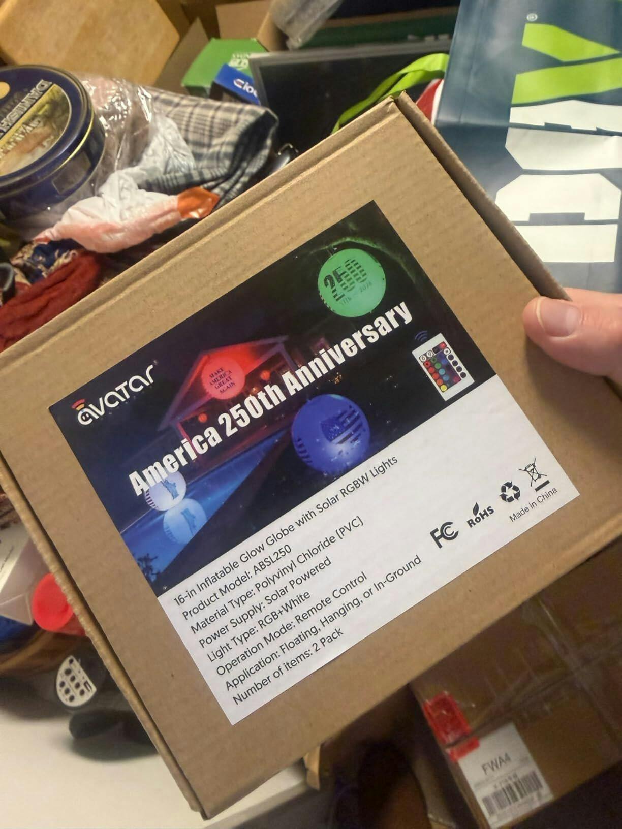 America 250th Anniversary 16 inch Inflatable Glow Globe Solar RGBW Lights 2-Pack
