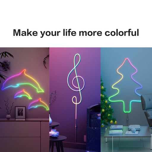 Neon RGBIC Magic Color LED Strip with wifi music smart APP control has dreamcolor LED and works with Alexa and Google Assistant. It is made of sili...
