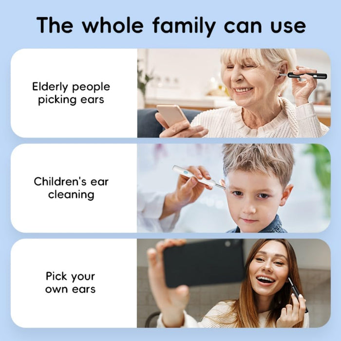 - Intelligent Visible APP: The Ear Wax Cleaner supports both Android and iOS devices. Scan the QR code to download the APP. Press and hold the switch button to turn it on, and connect Earwax Camera through the device's WIFI to start using. See real-time images of your ear, and capture or save photos and videos for easy sharing and tracking of changes in your ear health. The built-in WiFi does not support internet access, will not access or transmit data. You can use the tool with peace of mind