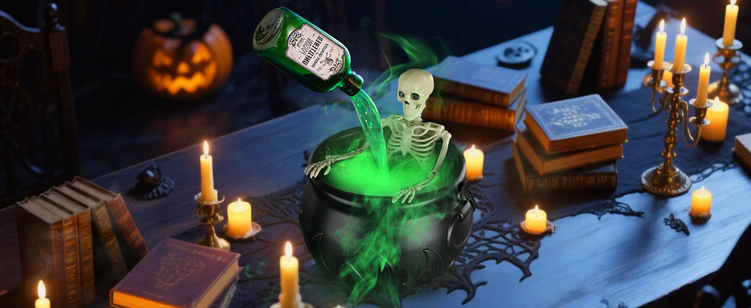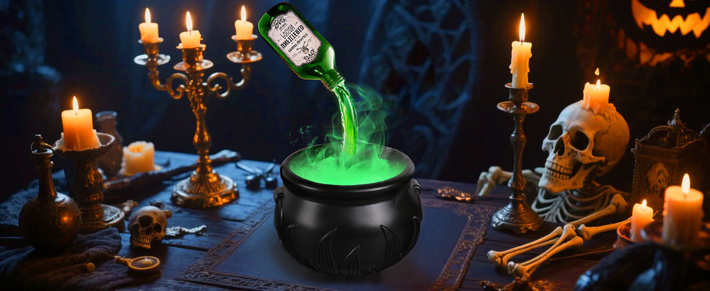 Cauldron Halloween Decor with Magic Floating Potion Bottles and Diffuser