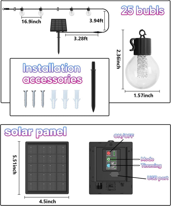 Solar String Lights Outdoor Warm White & Multicolor Hanging Lights G40 Globe 50FT 25LEDs