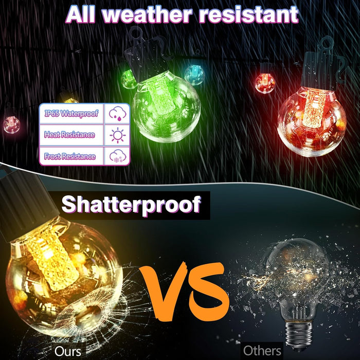 - Shatterproof & Weatherproof: Solar colored outdoor string lights made from high-quality plastic, outdoor patio lights are shatterproof and IP65 waterproof, built to withstand rain, wind, and snow. Designed for year-round use, they are the perfect choice for any outdoor setting.
