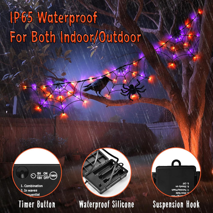 Halloween Decorations Spider Web Lights 6FT 60LED