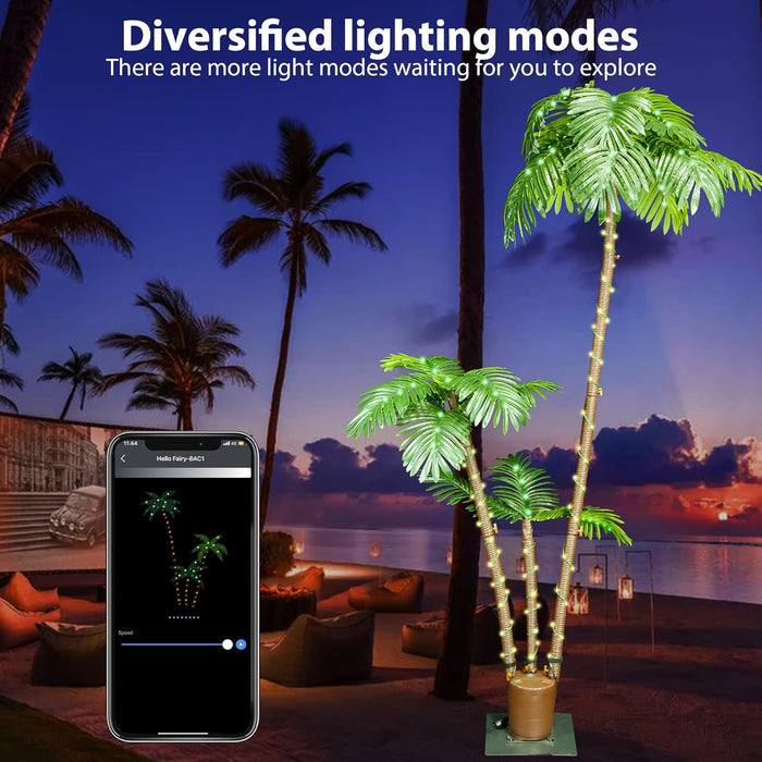 6FT/7FT Lighted Artificial Smart Palm Tree Christmas Tree Warm White with App Control