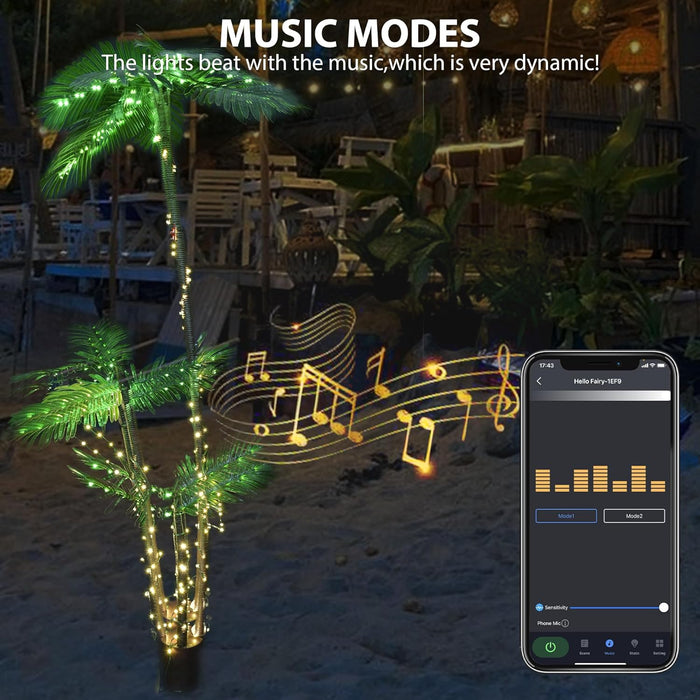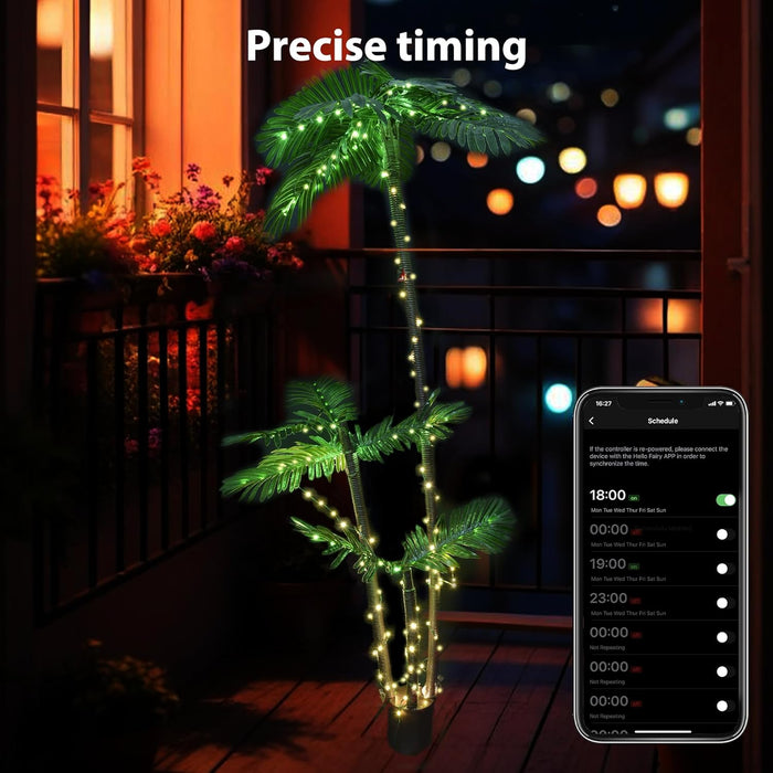 - TIMING CHRISTMAS TREE LIGHTS -- The APP can set automatic playback mode, switch the palm tree switch, timer, music mode, dimming, adjust the brightness of the tree, and so on.