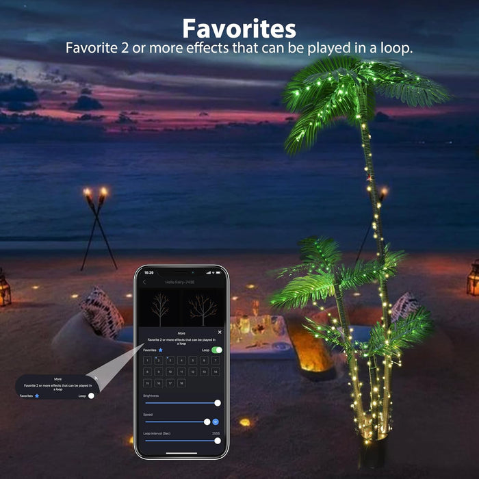 - GROUP CONTROL -- Use the app to manage your palm tree lights, expand or synchronize varied units.A virtual grouping of multiple trees in the house showcases stunning multi object Christmas lights.