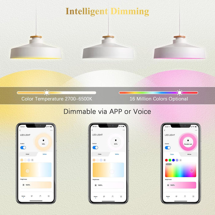 - Multi-Color Changing & Scene Mode: With a wide range of 16 Million Colors Options and Tunable White from warm white to cool white, you can customize the desired color temperature to match different scene moods or activities, add ambiance to the room, and can also go super bright white when necessary. There are various pre-setup scene modes for your choice via one-tap quickly.