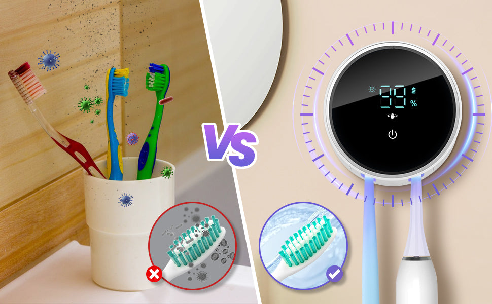 - High-Efficiency UV Disinfection: Utilizing advanced UVC+UVA technology, this toothbrush sanitizer and holder ensures up to 99.9% disinfection, providing comprehensive protection for your toothbrush and ensuring each use is hygienic.