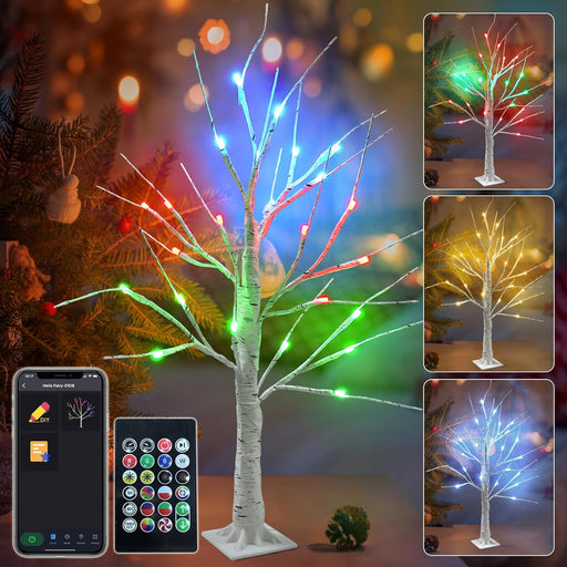 This product offers a 2FT/6FT Smart Lighted Birch Tree and Cherry Tree for Christmas Decorations Indoor, with the ability to control the color chan...