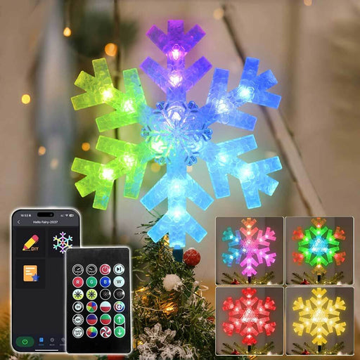 The Christmas Snowflake Tree Topper is a 9-inch smart lighted decoration that offers 16 million color options and can sync to music. The customizab...