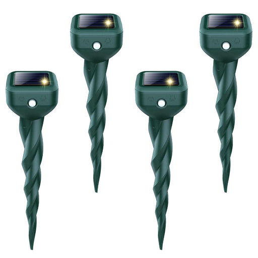 This 4-pack of Mole Repellent Solar Powered Waterproof Ultrasonic Deterrent Stakes uses sonic spikes to effectively deter snakes, groundhogs, gophe...