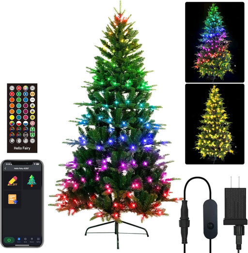 This prelit artificial Christmas tree is 6FT tall and features a DIY color changing option, controlled by an app. With over 100 preset scenes and a...