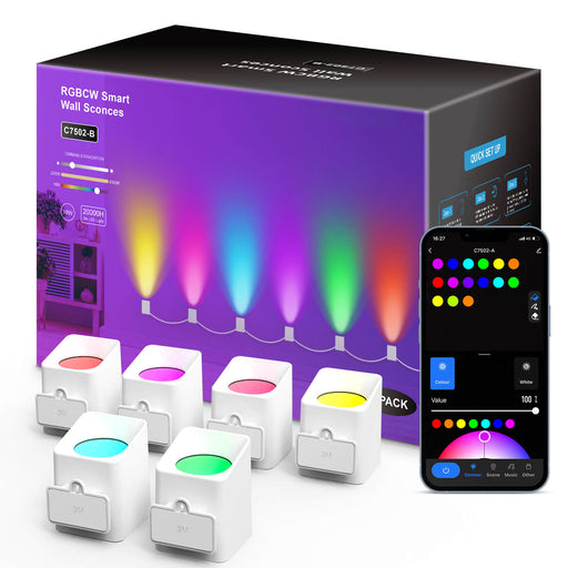 This pack of 6 Smart Wall Sconces features WiFi connectivity and 54 dynamic color modes. With the ability to change colors and synchronize to music...