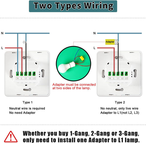 Smart Push Light Switch Neutral Wire Required (EU/UK Version)