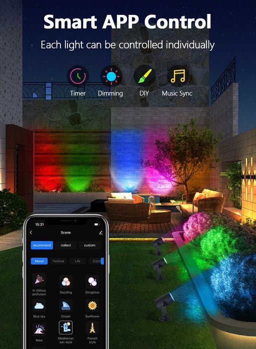 Discover the perfect outdoor ambiance for your garden, lawn, fence, or holiday parties with our RGBIC outdoor spotlights. With 16 million color opt...