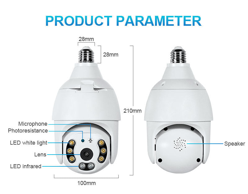 3MP WIFI Lamp Bulb IP Camera Night Vision PTZ Security Camera