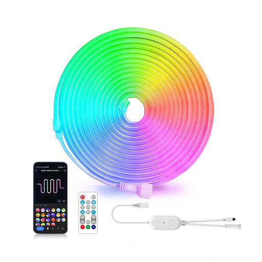 Neon RGBIC Magic Color LED Strip with wifi music smart APP control has dreamcolor LED and works with Alexa and Google Assistant. It is made of sili...