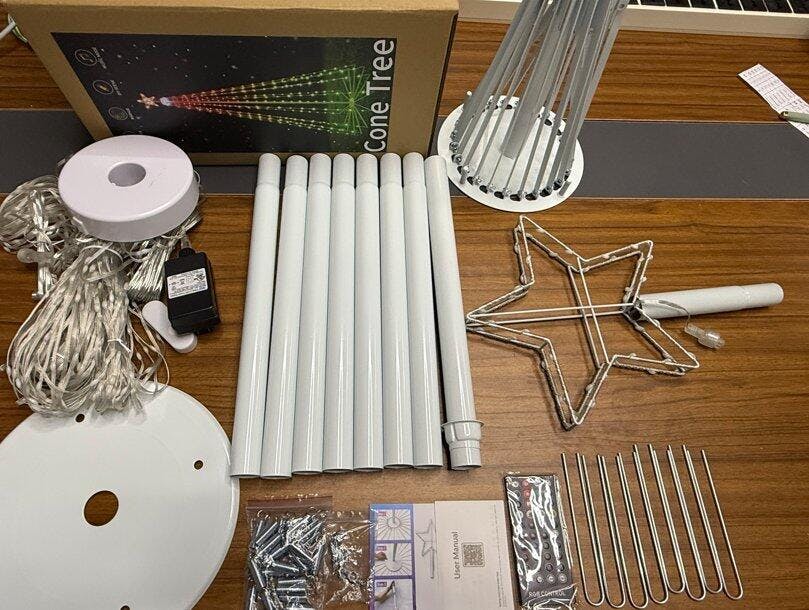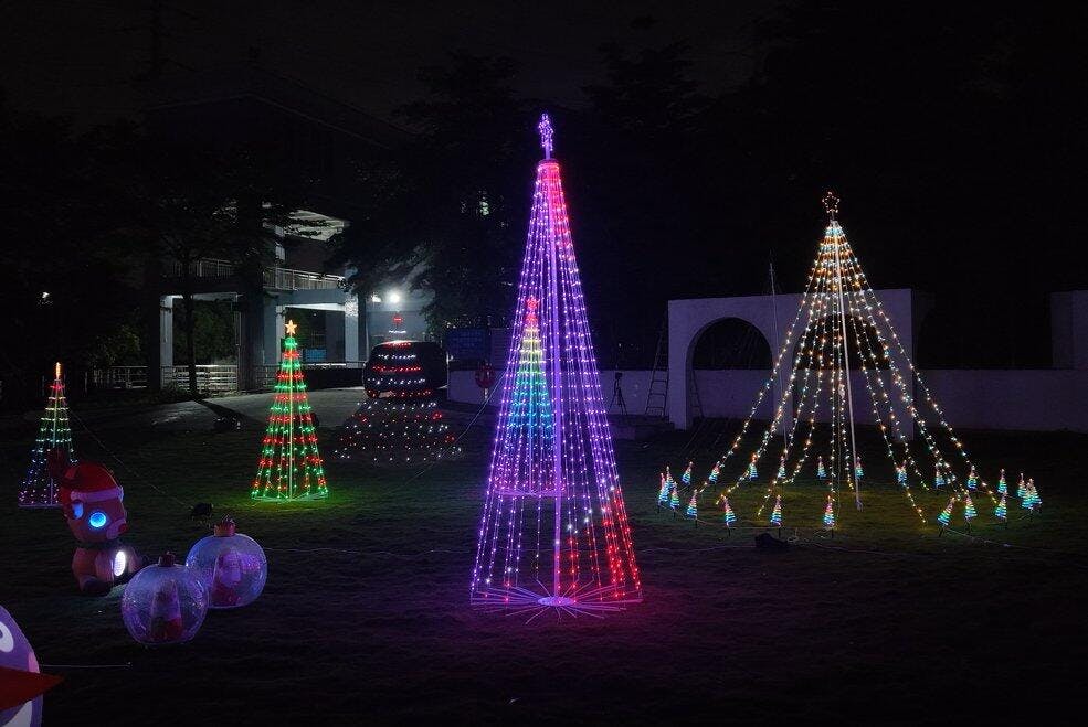 🎄 12-Ft Grand Cone Tree with 832 RGB LEDs: Make a stunning statement with this 12-foot cone tree, wrapped in 24 strands featuring 832 vibrant RGB LED lights—perfect for creating a brilliant and eye-catching centerpiece both indoors and outdoors.